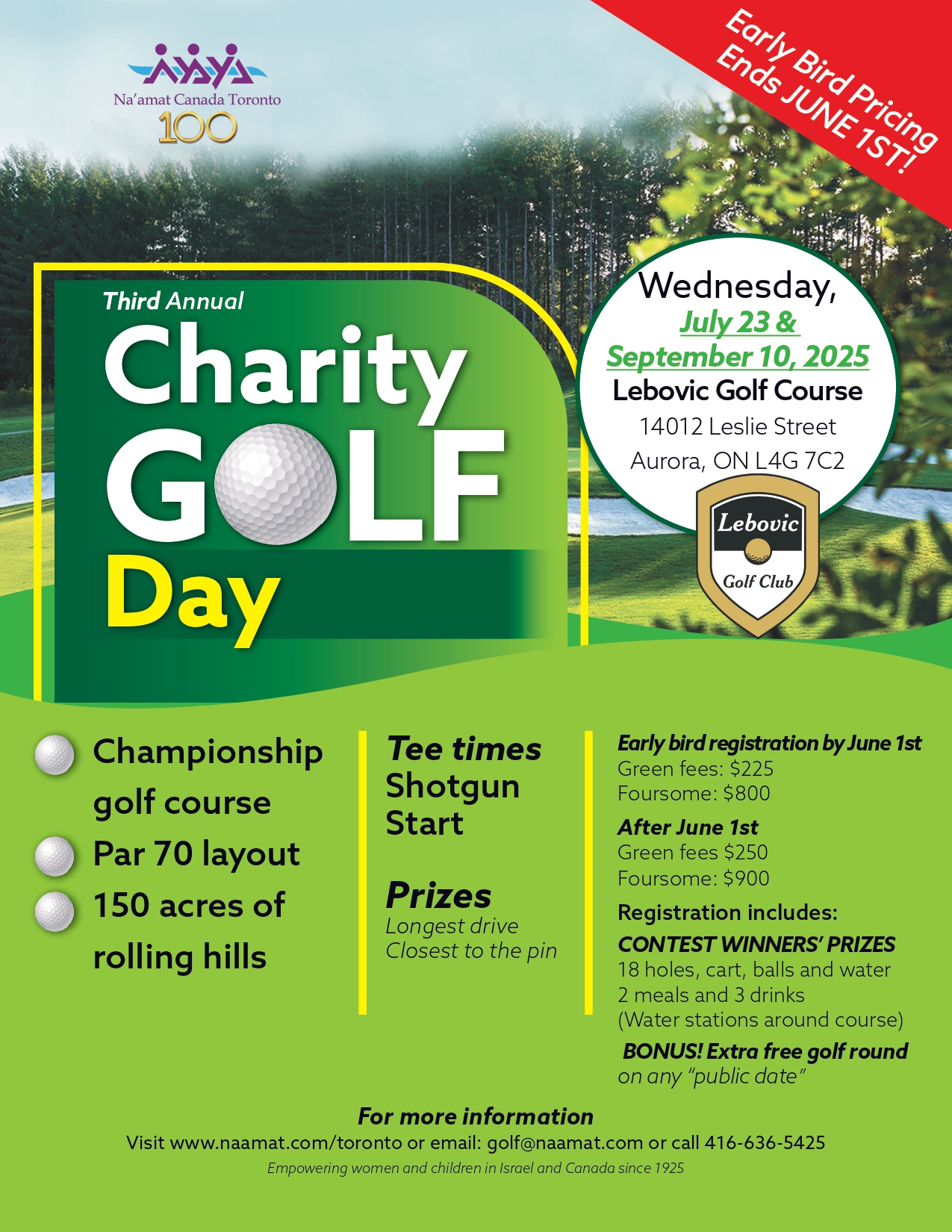 Na'amat Canada Toronto is holding their Third Annual Golf Tournament at Lebovic Golf Course on July 23, 2025 and September 10, 2025.