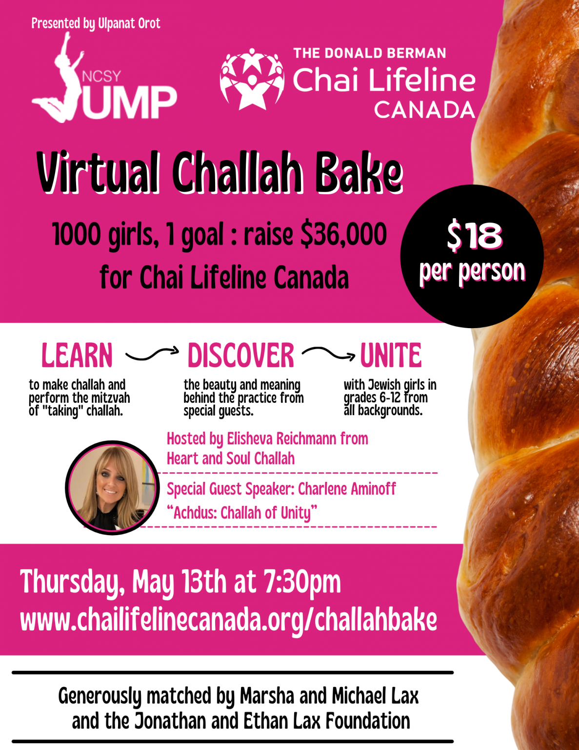 Join 1000 girls to raise $36,000 for Chai Lifeline, with host Elisheva Reichmann and Guest Speaker Charlene Aminoff.