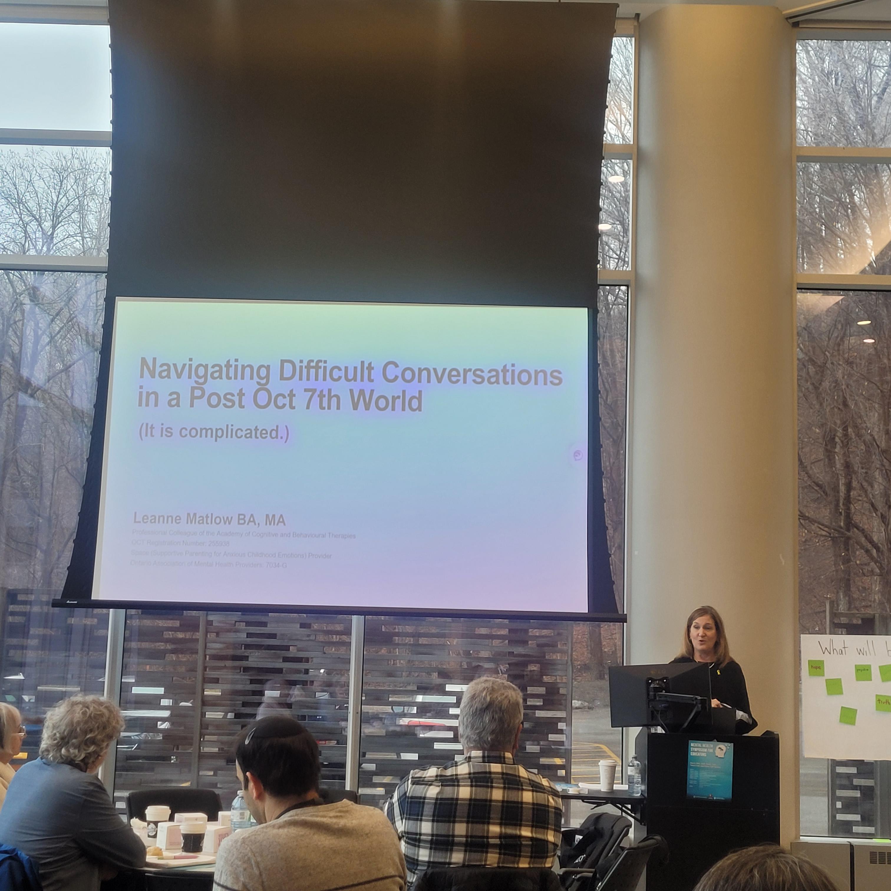 Participants heard from Leanne Matlow and Dr Barry Simon, who explored the stress and trauma that can result from experiencing antisemitism in the public school system. They provided helpful tools and tricks to cope with difficult situations and conversations.