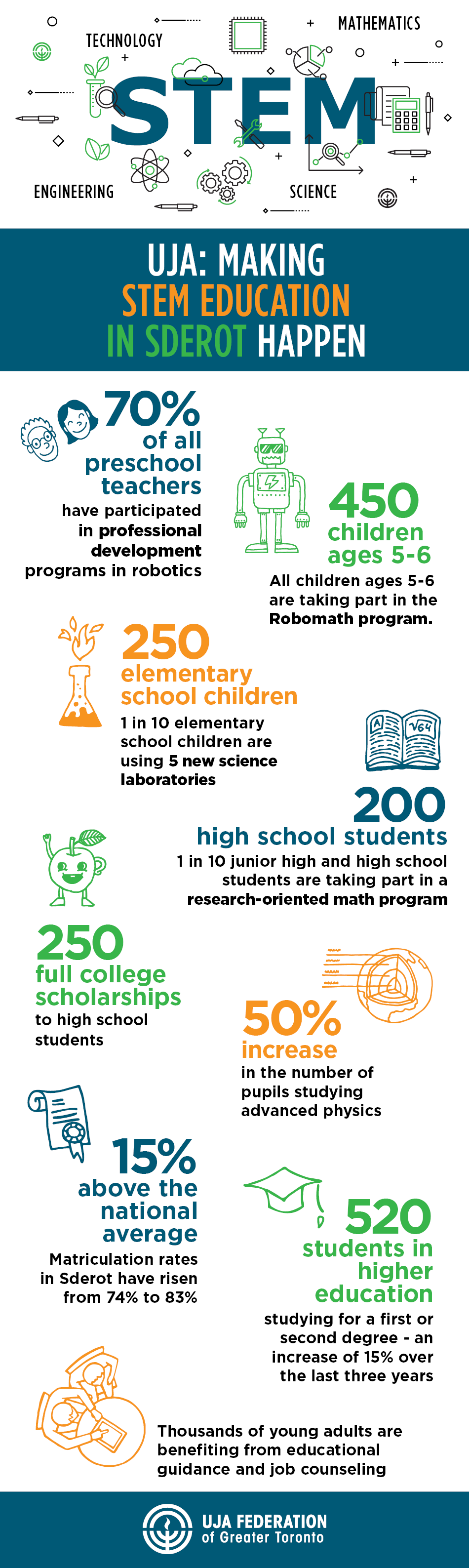 Known as “The Start-Up Nation”, Israel relies on its thriving, high-tech economy. Providing the next generation of Israelis with access to quality STEM education will help propel further innovation in the Jewish State and ensure a strong economic future. In focusing our efforts on Sderot, a town in the southern district of Israel which has suffered from years of daily rocket attacks, we are also able to help a community build its resilience and empower its vulnerable population through educational opportunities.