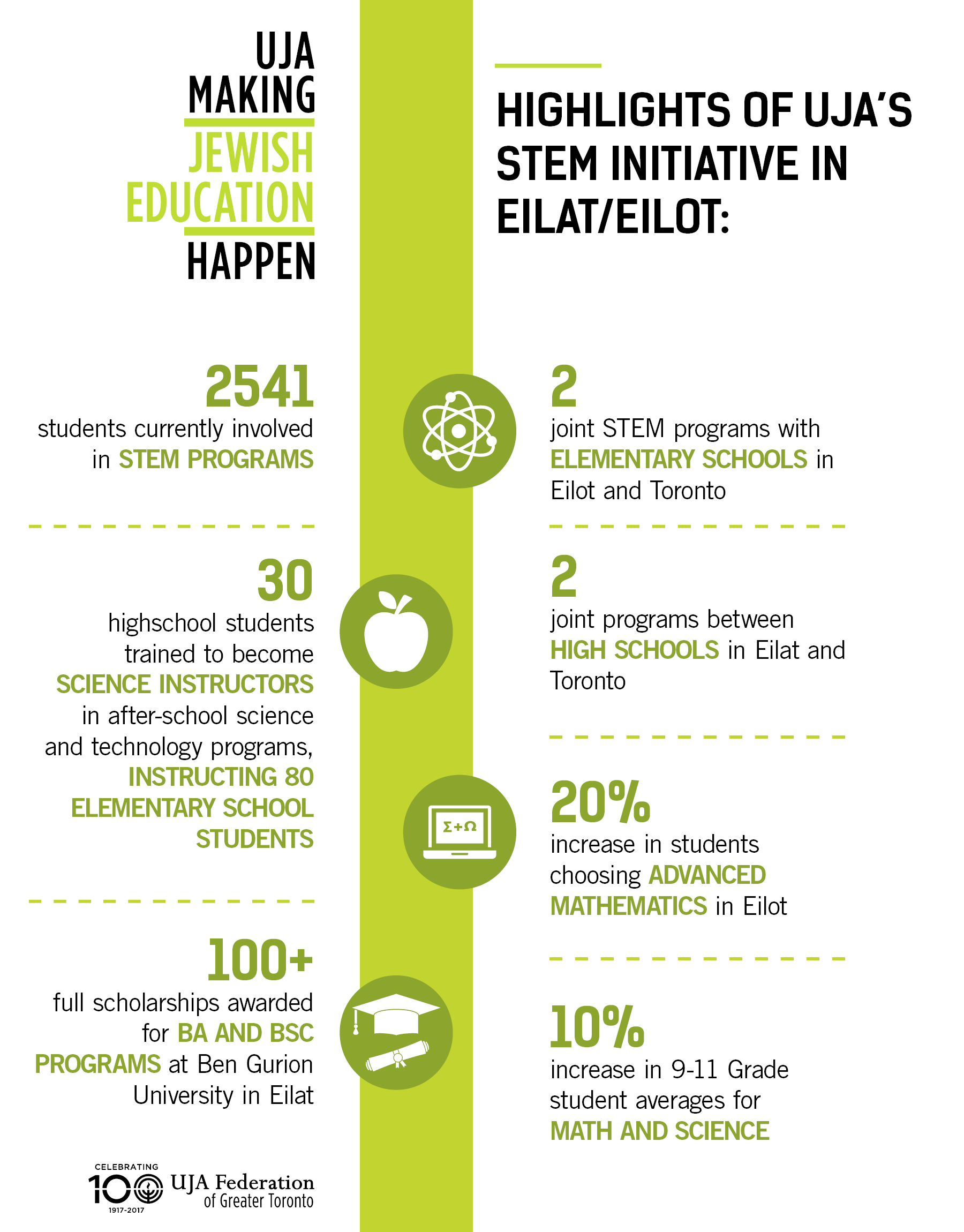 UJA is committed to bettering Jewish communities, not only in Toronto but in Israel as well. In particular, we are proud to partner with Eilat/Eilot, located on the southernmost tip of Israel. With your support, UJA has strengthened schools in the area through extensive STEM (Science, Tech, Engineering, Mathematics) programming and educational initiatives.