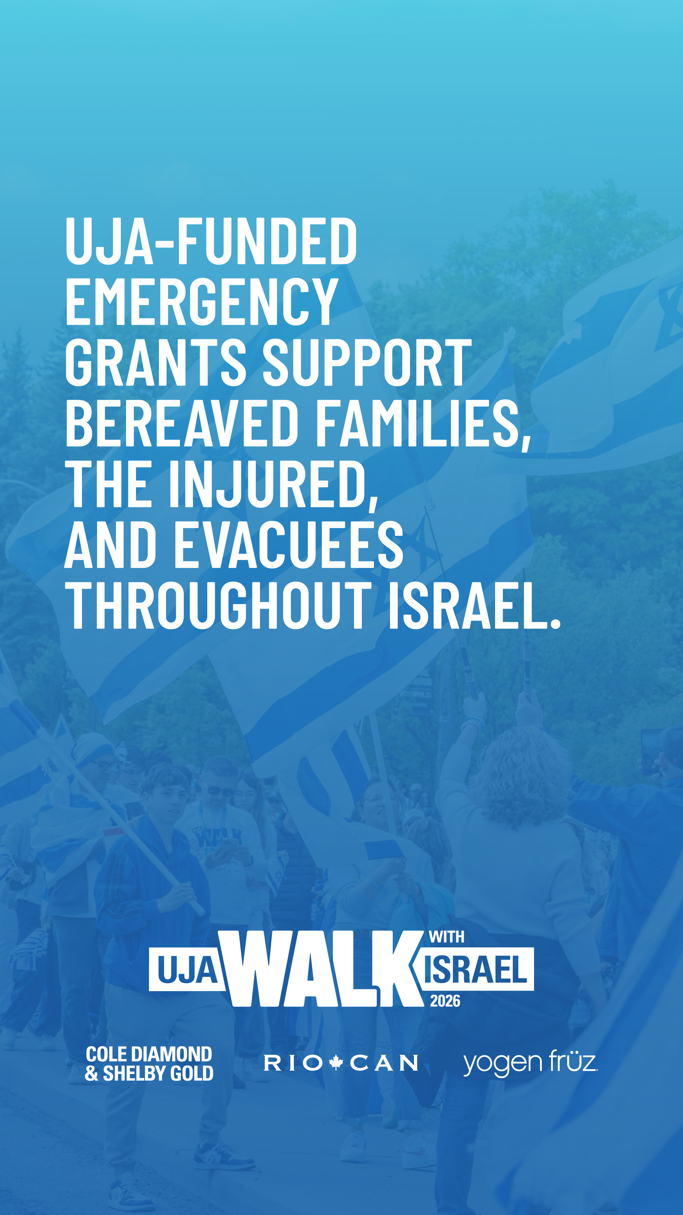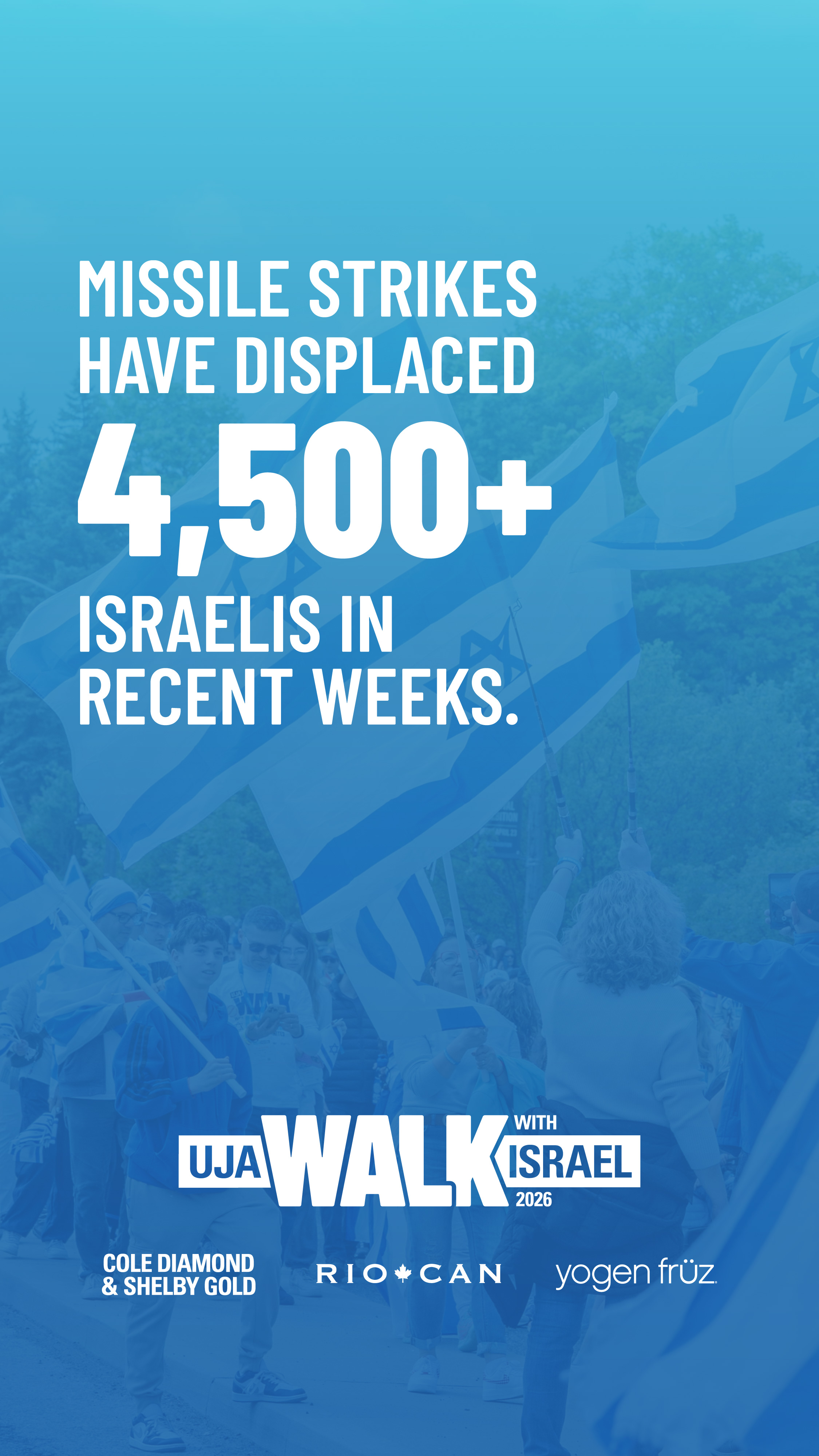 Show your impact! These social media assets are a meaningful way to highlight how donations to the Walk with Israel support Israelis. Use the power of social media to spread the word and help reach your fundraising goal.